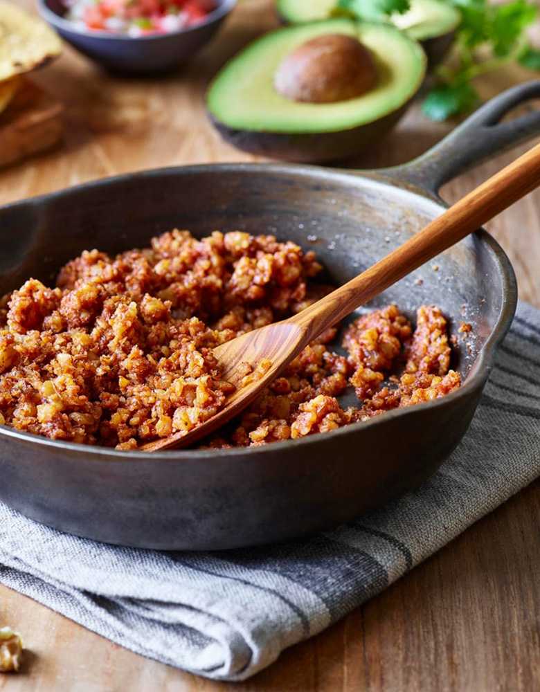 Walnut mince is ideal for reinterpreting beloved classics such as Bolognese and burger patties into a plant-based version.