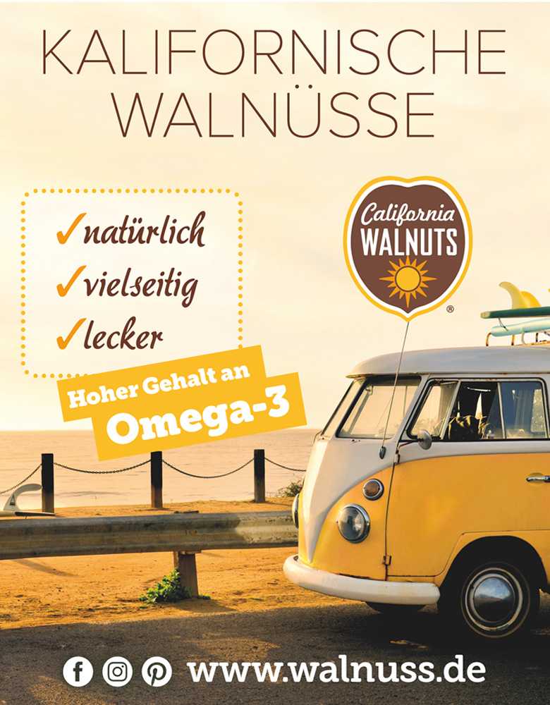 From mid-August, a five-week, German-wide POS promotion will take place in EDEKA supermarkets. During the California Summer Campaign, pure walnuts, walnut bread with a walnut dip and yoghurt with maple syrup and walnuts will be sampled. New recipe cards, product information as well as California-style decorations and tasting booths will attract attention. Around 80,000 customer contacts are expected during the campaign period.